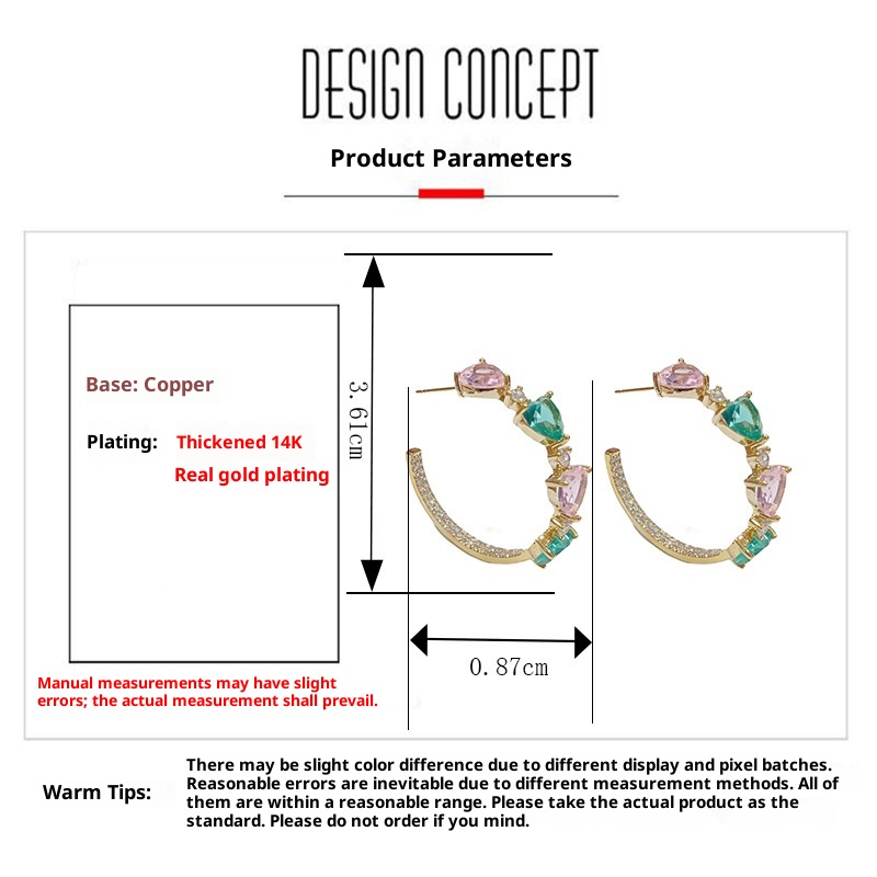 Color: colored loving heart C- shaped ear ring (thick gold plated)